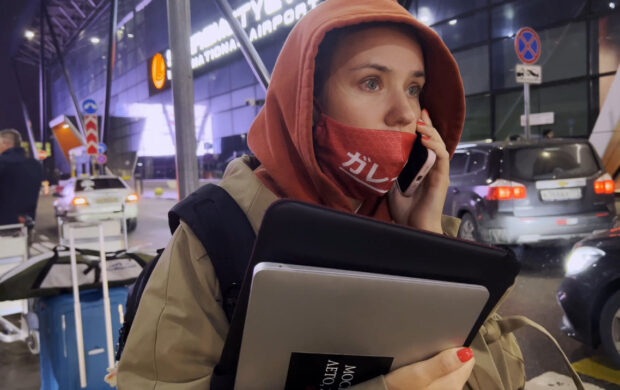 Quelques affaires jetées dans une valise, un billet d’avion pour Istanbul acheté en catastrophe : le film se dépeuple soudainement de ses personnage, quittant leur pays les unes après les autres. Les premières images de l’invasion de l’Ukraine sont encore fraîches à nos mémoires, celles du basculement de la Russie dans la loi martiale sont plus rares. Julia Loktev est là, au milieu du tumulte que le montage de My Undesirable Friends entend restituer en épousant celui des émissions diffusées par Rain dans ses derniers moments. Quelles images, quels récits reste-t-il lorsque les visages que la série nous avait accoutumé·es à voir et à écouter ont quitté le plan, centrifugées vers un hors-champ lointain ? Le carton final promet une seconde partie à la série, sobrement intitulée Exil.