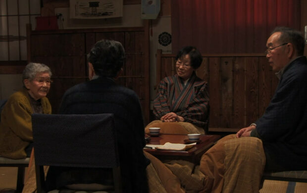 Dernier volet de la trilogie, Storytellers révèle le sujet sous-terrain des trois premiers films : la parole et l’espace de communication authentique, « espace d’écoute » réciproque, qui se créée entre deux personnes. Cet enjeu apparaît ici dépouillé des récits de la catastrophe, puisqu’on plonge là dans les traditions orales de contes et légendes du Tohoku, en suivant la collecte d’histoires de Mme Ono. On comprend pourquoi les entretiens des trois premiers films traitent de la survie dans le langage après la catastrophe, dans une réflexivité qui fait que chaque entretien achemine une vision singulière du langage comme forme de vie humaine. Il en va ainsi de l’échange bouleversant avec la jeune bibliothécaire de Shinchimachi (dans Voices from the Waves. Shinchimachi) qui confie son malaise avec les mots et combien les survivants peinent à parler. Après qu’une réplique du tremblement de terre manque d’interrompre l’entretien, une fois le soleil revenu dans la bibliothèque où se déroule la conversation filmée, et sous l’effet aussi des paroles encourageantes de son interlocuteur, la jeune femme finit par confier sa « joie de parler » au cinéaste, par surmonter son inexpressivité. Ou encore à l’image de cette habitante de Minamisanrikucho qui raconte sa journée du 11 mars 2011 où elle devait retrouver son amie, laquelle a été emportée par le tsunami. Elle évoque l’importance pour elle de l’amitié ; leurs lectures communes, et la possibilité d’échanger, d’être écoutée, comprise. Ces petits miracles de la parole documentaire que recèlent chacun des quatre films de la « trilogie du Tohoku » sont rendus possibles par le dispositif de mise en scène qui, par son artificialité, libère les voix.