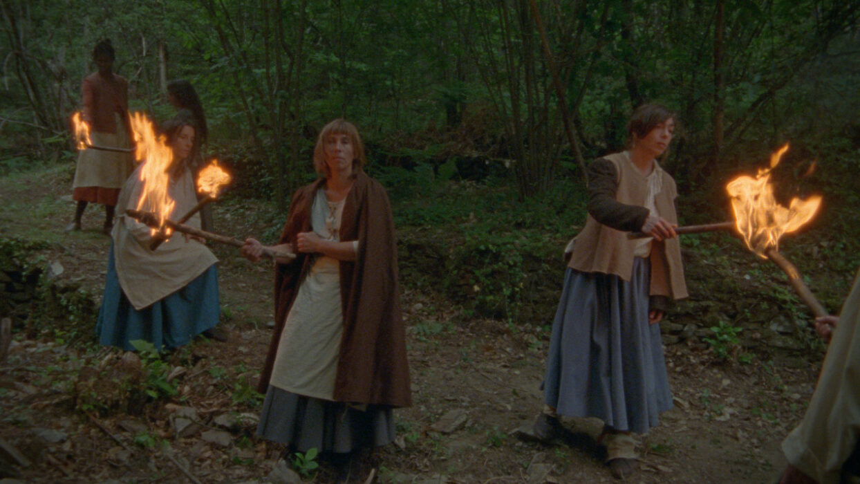 Devoid of dialogues and giving room for a sensory experience, the mise en scène centres on the lush vegetation and the bodies that live there, weaving a narrative where humans and animals join together to combat capitalism and patriarchy. By opening breaches in time, possible continuities take shape between the struggles of yesterday and those of today, inviting us to imagine other ways of inhabiting the world.