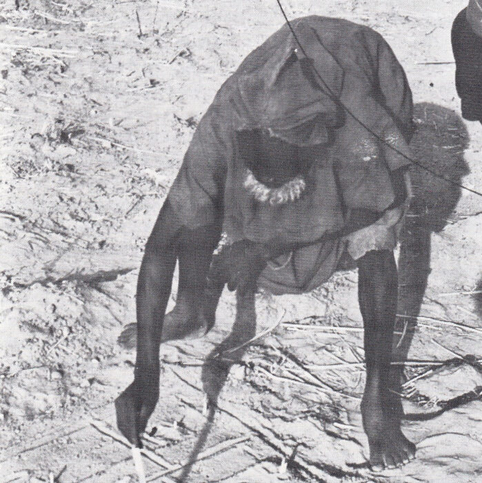 Every five years, the mask society of the Dogons of Sanga, Mali, organizes a great Dama, a ceremony to end the period of mourning and drive away “the dangerous thing”. The Dama shown here is for seven dignitaries, one of whom was called Ambara Dolo. The Dama lasts fpr three days, during which the new painted marks march and dance to enchant the souls of the dead that weigh on the village.
