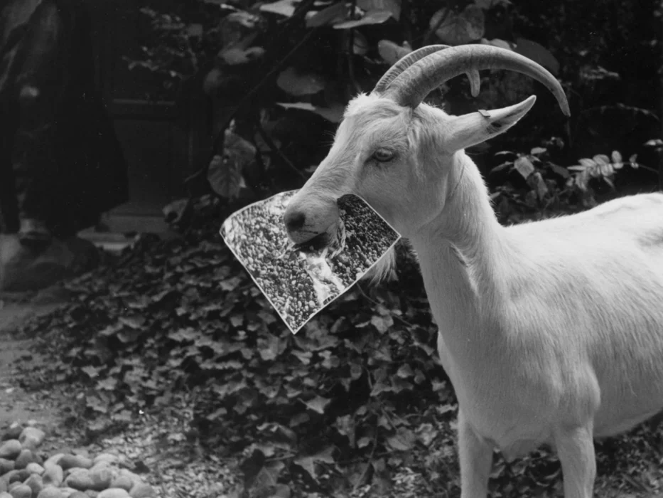 On the sea shore : a goat, a child and a man. It’s a photograph. This photograph, taken by the film-maker in 1954, is used as the starting-point for an exploration of the imaginary and the real.