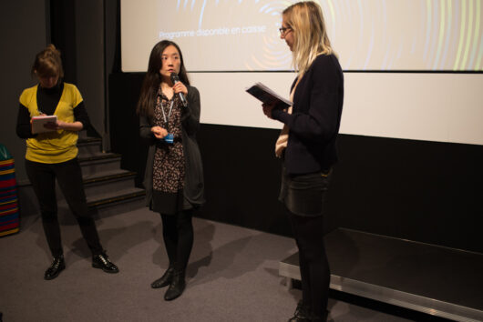 31 March - Short Film International Competition. Filmmaker Yi Cui presenting her film THROUGH THE LOOKING GLASS, with Maria Raluca Hanea (translator) and Anaïs Desrieux © Dao Bacon