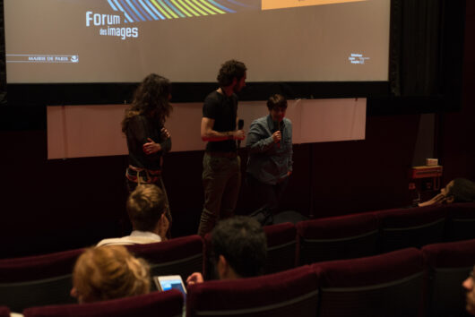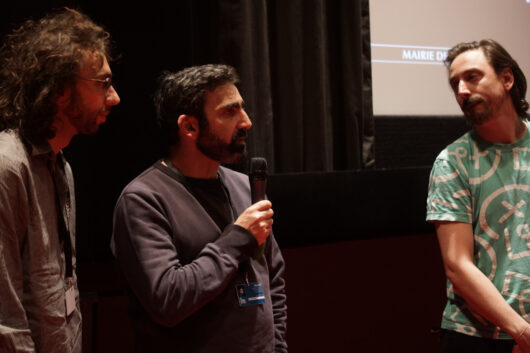 29 March - Short Films International Competition. Filmmaker Yuri Ancarani presenting his film WHIPPING ZOMBIE, with Pierre-Alexis Chevit and Gianluca Mattarese (translator) © Lou Dangla