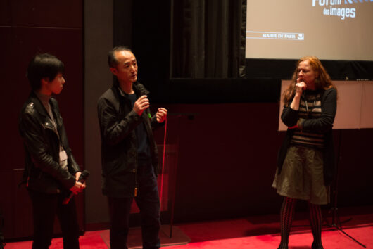 29 March - International Competition. Filmmaker Huang Wenhai presenting his film XIONGNIAN ZHIPAN (WE THE WORKERS), with Corinne Bopp and Yuwen Li (translator) © Dao Bacon