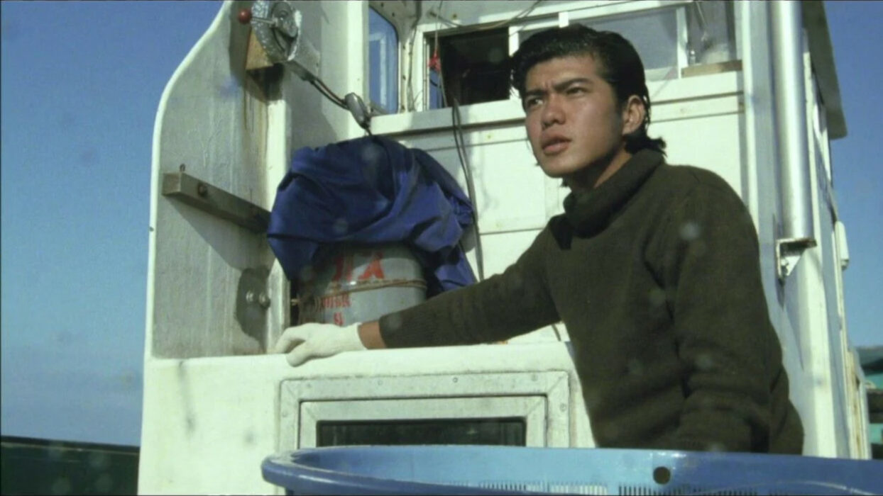 Après trois premiers films placés sous le signe de l’adolescence (Tonda Couple 1980, Sailor Suit and Machine Gun 1981 et P.P. Rider 1983), Shinji Somai effectue un virage surprenant avec The Catch, adapté d’un roman de Akira Yoshimura dont Shohei Imamura transposera plus tard L’Anguille (1997), fascinant objet entre documentaire et chronique familiale. On y plonge dans le milieu des pêcheurs de thon où le jeune Shunichi (Kōichi Satō) souhaite apprendre le métier auprès de Kohama (Ken Ogata), le père de sa fiancée Tokiko (Masako Natsume). Seulement Kohama est un vieil ours solitaire dont toute l’attention est obnubilée par la pêche, ce qui lui a valu d’être quitté par sa femme et d’être un père absent bien qu’il vive avec sa fille.