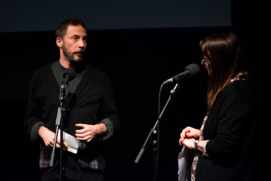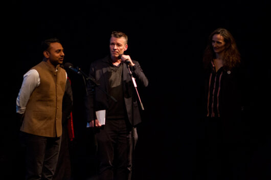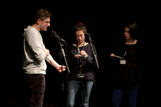 25 Mars - Compétition Internationale Courts-Métrages. Présentation de UPPLAND de Edward Lawrenson, ici accompagné de Killian Doherty (producteur) et Gill Gladstone © Rhaíssa Monteiro Pinto