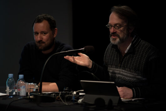 24 Mars - IR/RÉEL. Présentation de END OF LIFE de Paweł Wojtasik (et John Bruce), ici accompagné de Lev Khvostenko (débateur) © Rhaíssa Monteiro Pinto