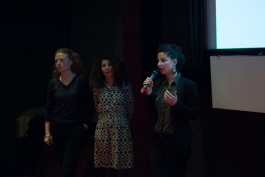 25 Mars - Compétition Internationale Premiers Films. Présentation de WILD RELATIVES de Jumana Manna (au micro), ici accompagnée de Galyna Tymoshenko (traductrice) et Gustavo Beck (débateur) © Dao Bacon