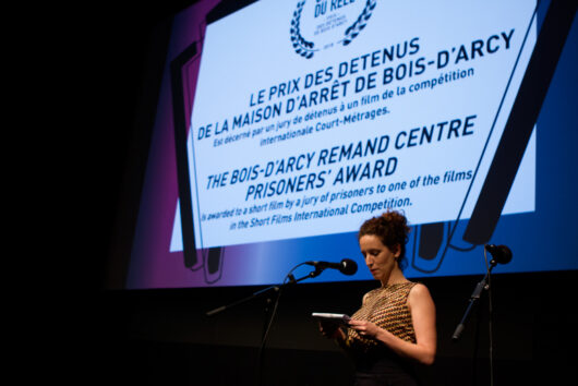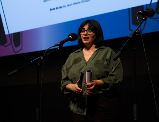 31 Mars - Palmarès. Suzanne de Lacotte (responsable médiation de Cinéma du réel) remet le Prix des détenus du centre pénitenciaire de Bois d’Arcy à SAULE MARCEAU de Juliette Achard © Rhaíssa Monteiro Pinto