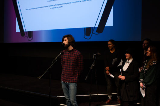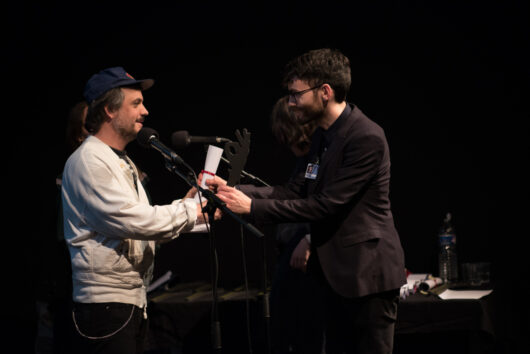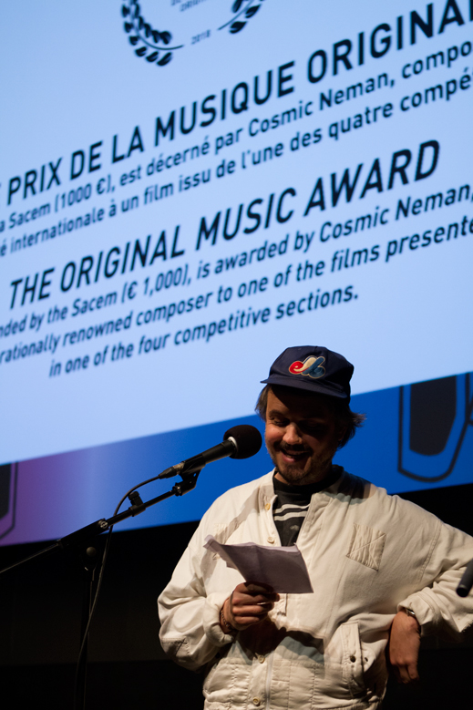 31 Mars - Palmarès. Cosmic Neman remet le Prix de la Musique Originale à THE IMAGE YOU MISSED de Donal Foreman. Musique originale de Ohal Grietzer, Michael Buckley et Christopher Colm Morrin © Rhaíssa Monteiro Pinto